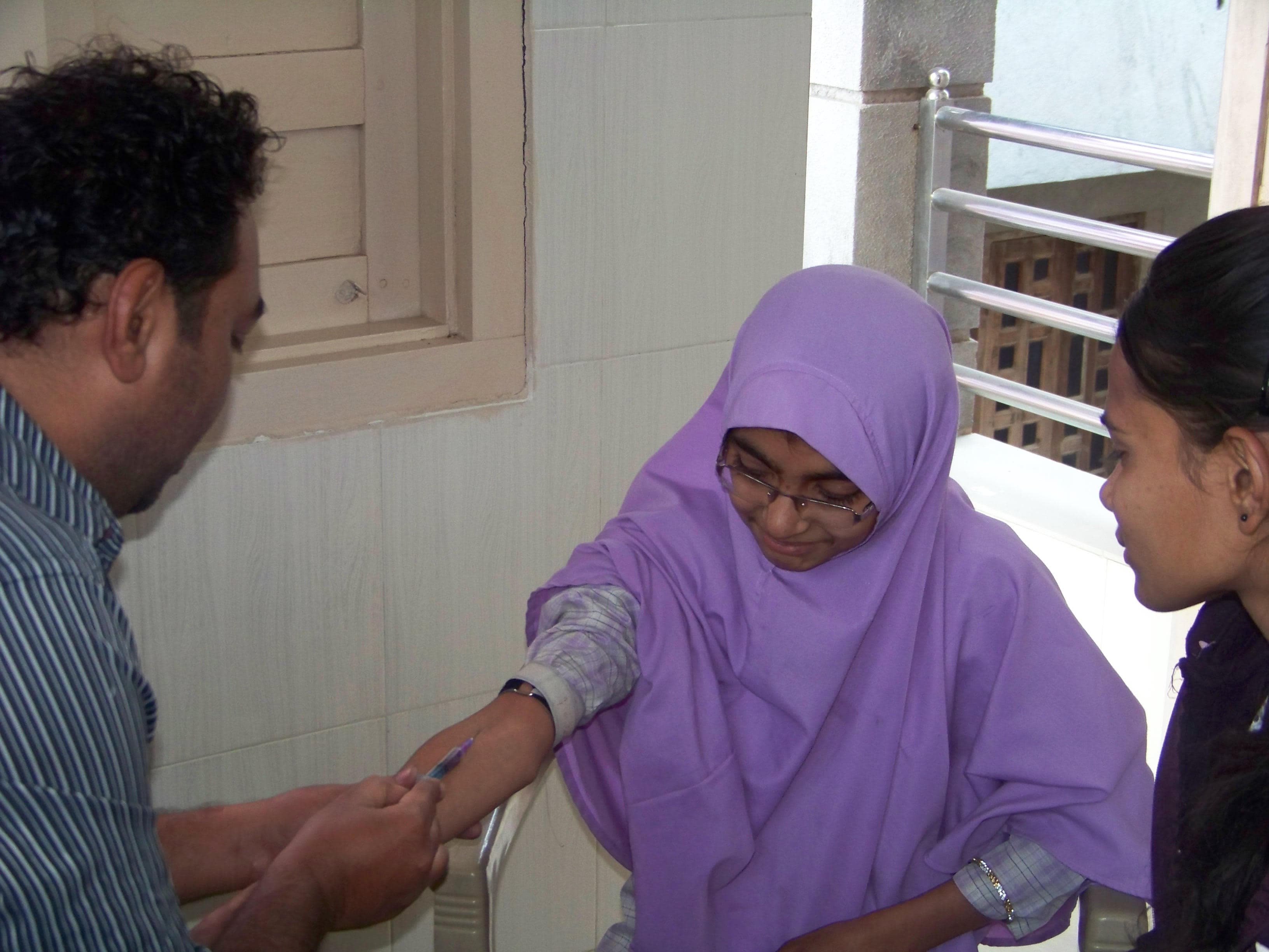 • Children Waiting to get a free blood test provided by SGWT.
